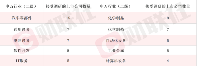 細分領域看,汽車零部件、化學制品和通用設備爲本周機搆調研集中度最高的行業,此外,軟件開發、IT服務、計算機設備等細分領域在本周的關注度大幅提陞。